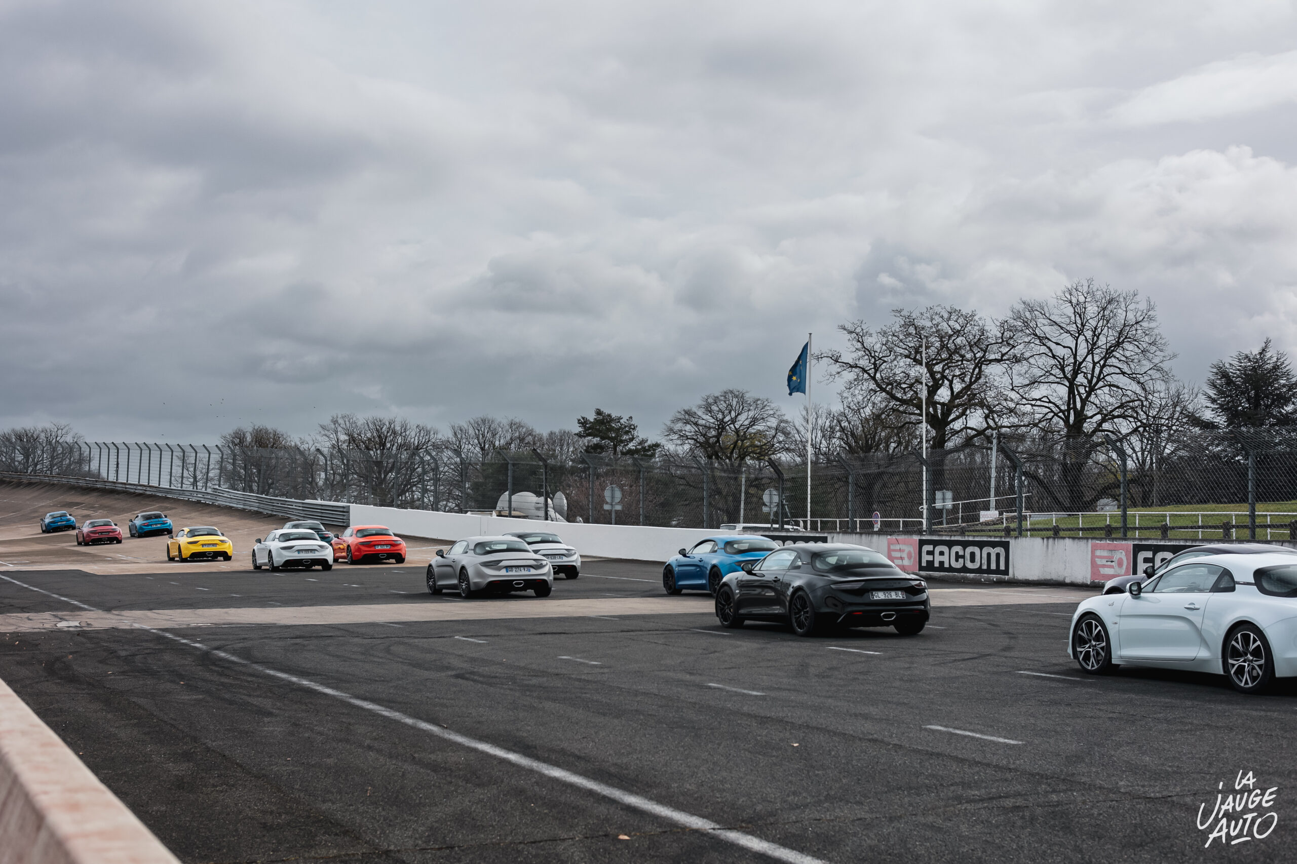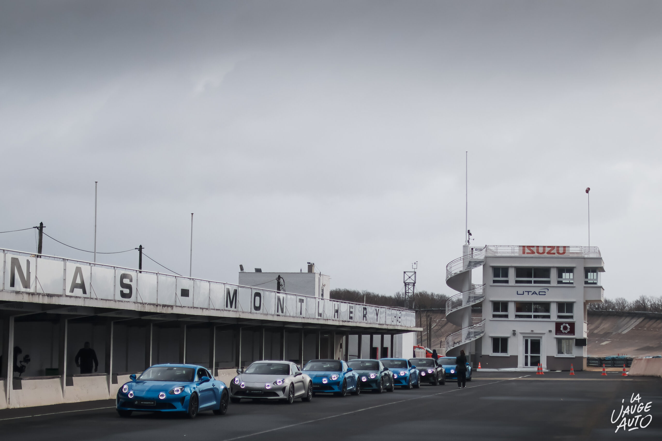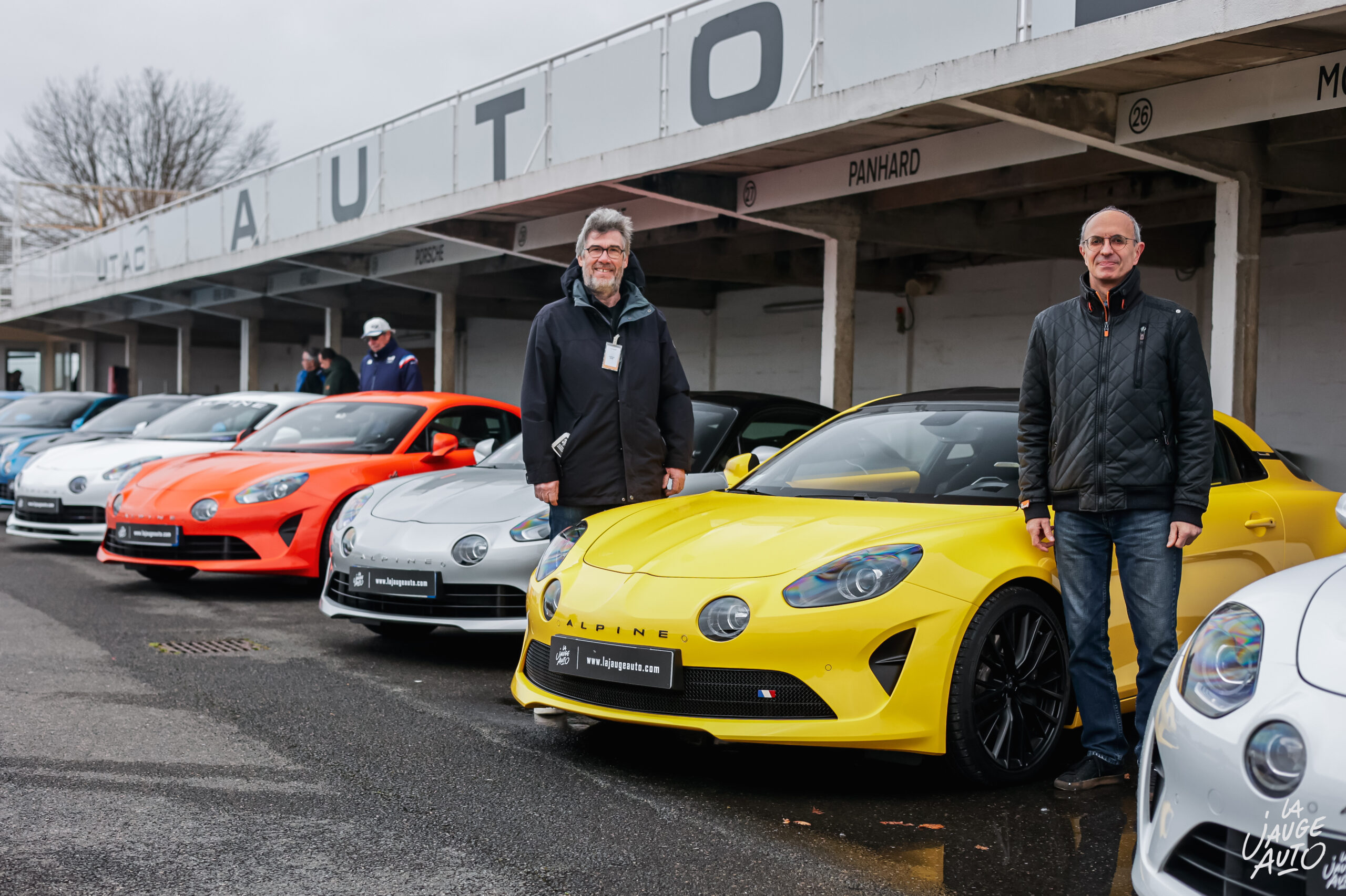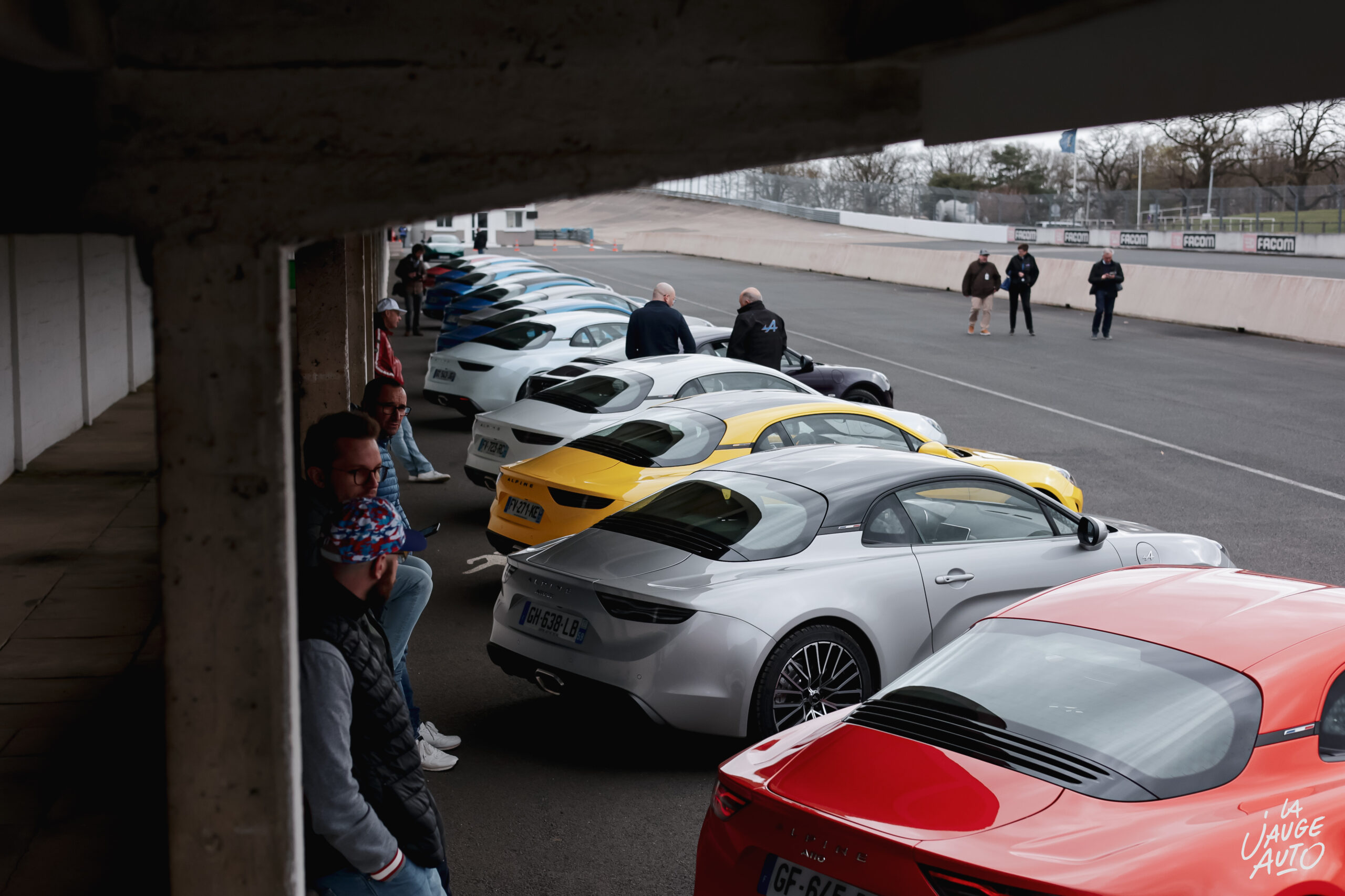 L’impatience de nos hôtes du jour est à la hauteur de la surprise que nous leur réservons : en plus de la privatisation de la piste, le nouveau modèle de la marque, l’Alpine A110R, est présent en exclusivité ! Pas encore présenté au réseau mais déjà présente pour ce chapitre 1, quel honneur.