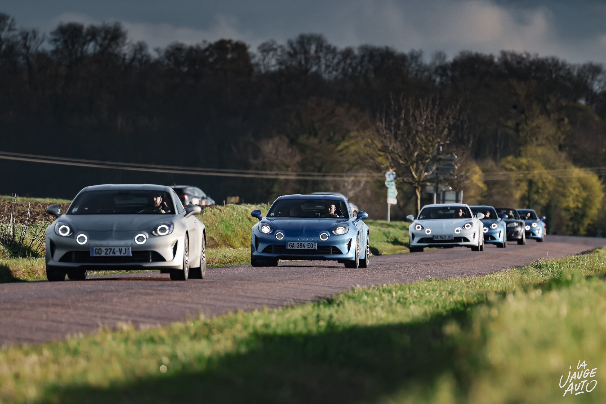 Malheureusement, la météo n’était pas au rendez-vous et pourtant, elle permet de mettre en avant la polyvalence de notre belle française. Route nationale, départementale, route pavée, route détrempée… La file d’A110 impressionne, de Montlhéry à Milly-la-Forêt en passant par Courances.