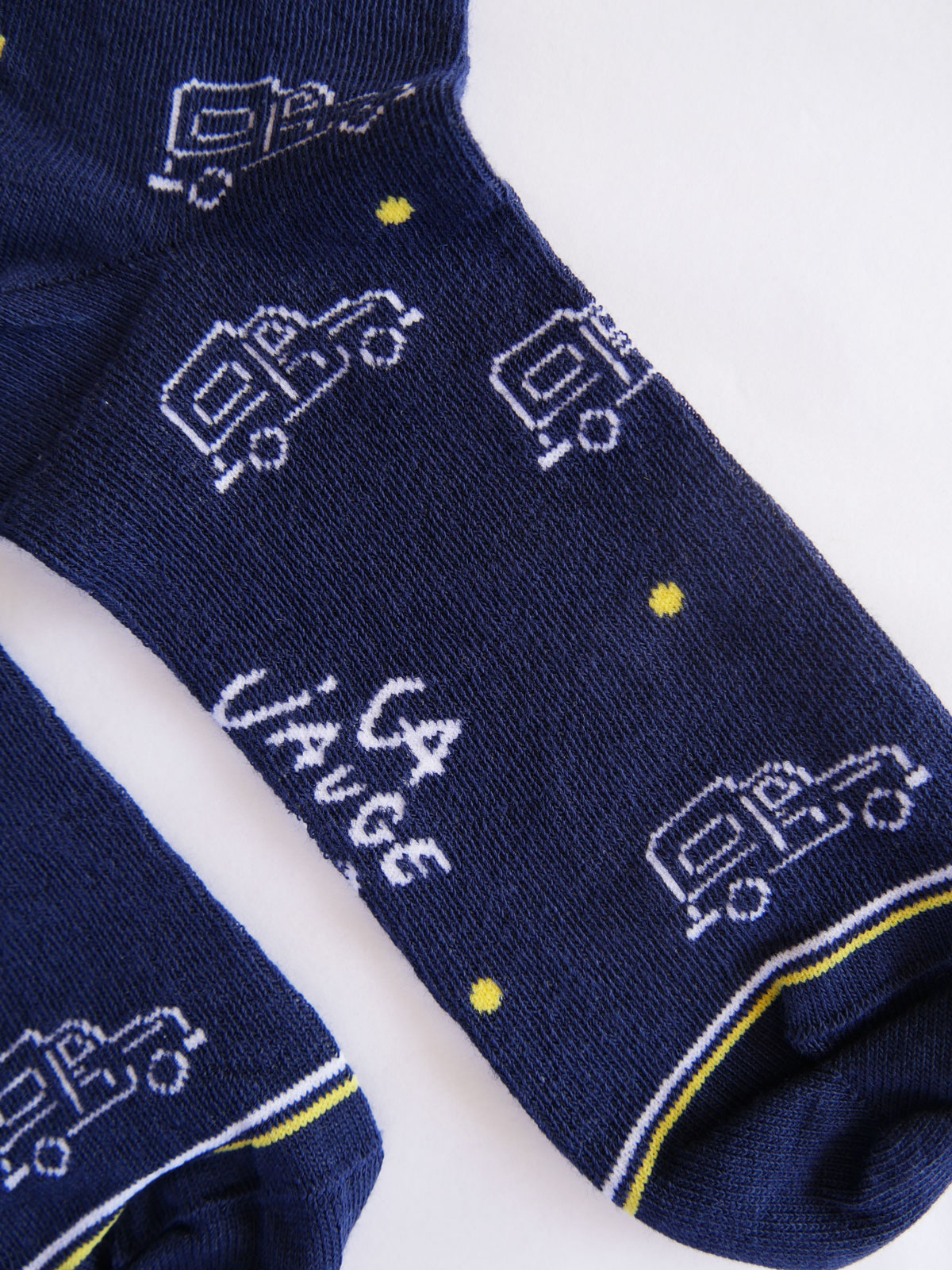 Nos premières chaussettes sont arrivées ! Fun, vintage et colorées, elles affichent fièrement notre fourgonnette préférée.