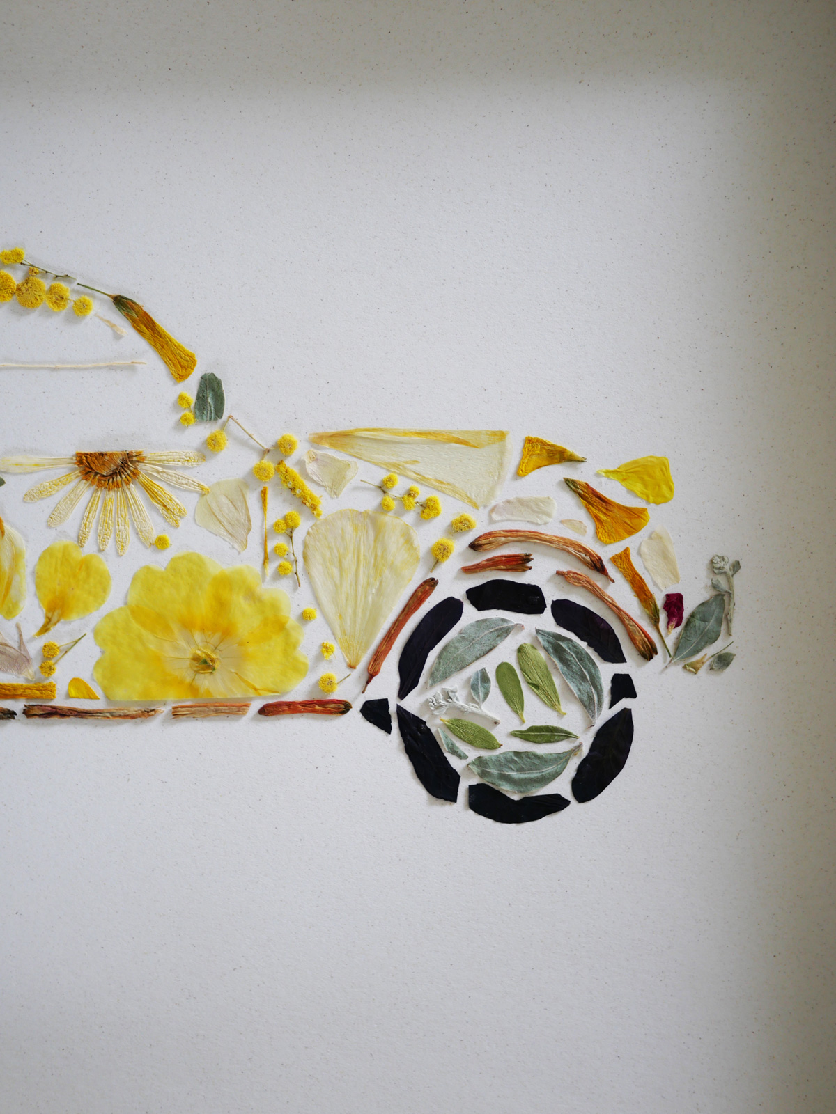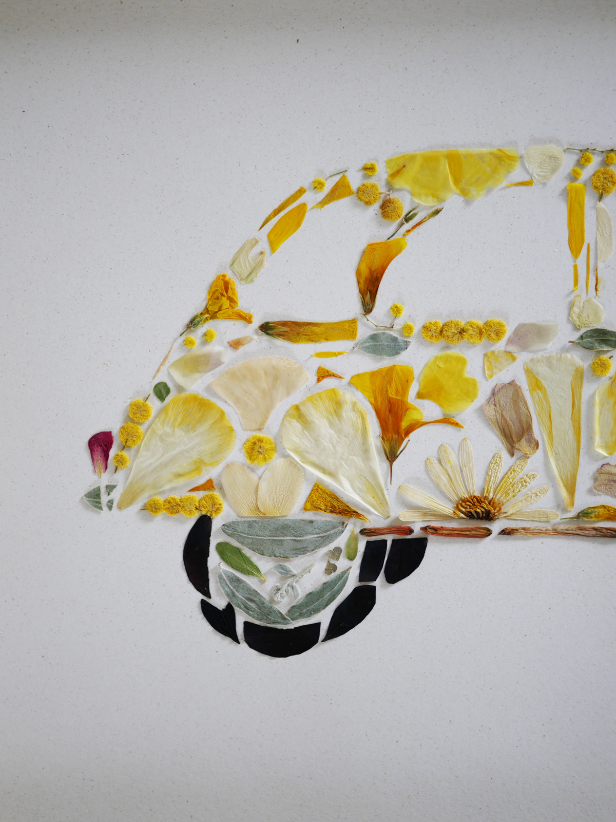 L’ensemble des herbiers créatifs sont pensés et développés en collaboration avec Émilie, fondatrice de Madame Mimosa qui met son univers poétique au service de nos herbiers automobiles.