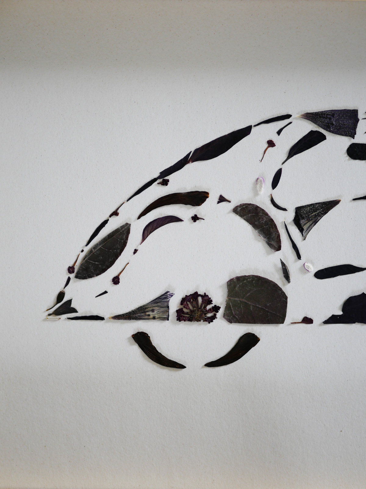 L’herbier “La voiture noire” est composé de végétaux soigneusement sélectionnés (lantana, erythrina, sauge, ipomea et loropetalum) produits, cueillis et séchés dans le Var.