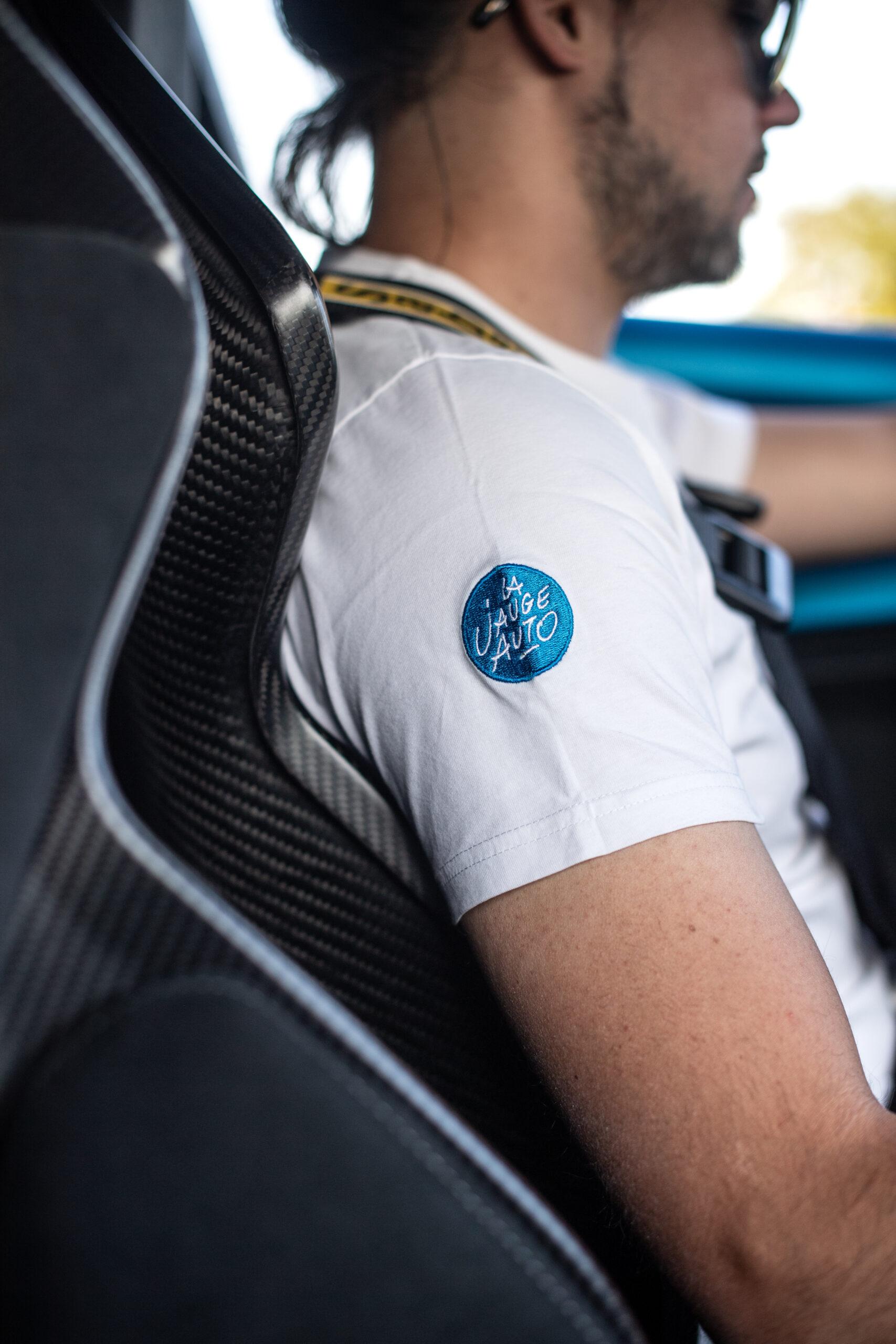 - Patch La Jauge Auto brodé en bordeaux sur l’épaule